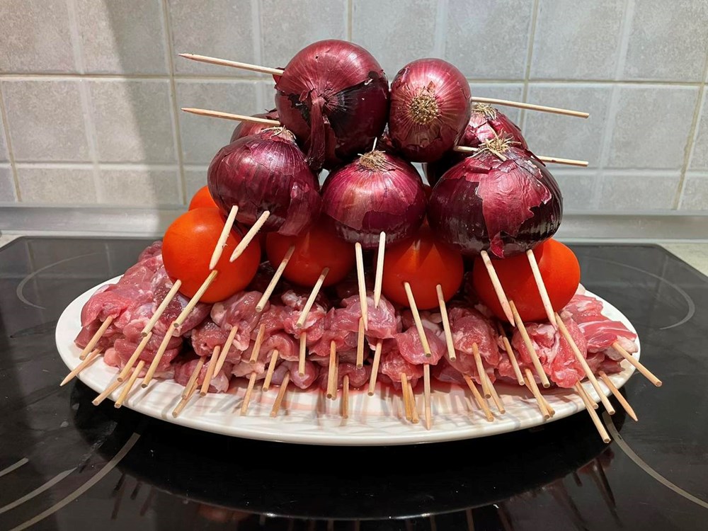 Zatim taj pomidor i luk isjeckajte nožem na najsitnije dijelove pa ih stavite na veliki oval a štapiće ražnjića bacajte na dobivenu gustu “šalšu” od luka i pomidora pa ih nakon što odstoje u toj šalši nekoliko minuta vadite i jedite... gušt je vrhunski... uživajte i dobar tek... pozdrav, "Arabian hunter's"!