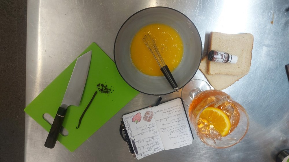 Izmutiti jaja u zdjelici s pola deca maslinovog ulja, par kapi ekstrakta arome ruma i pola štapića vanilije sitno nasjeckanog.