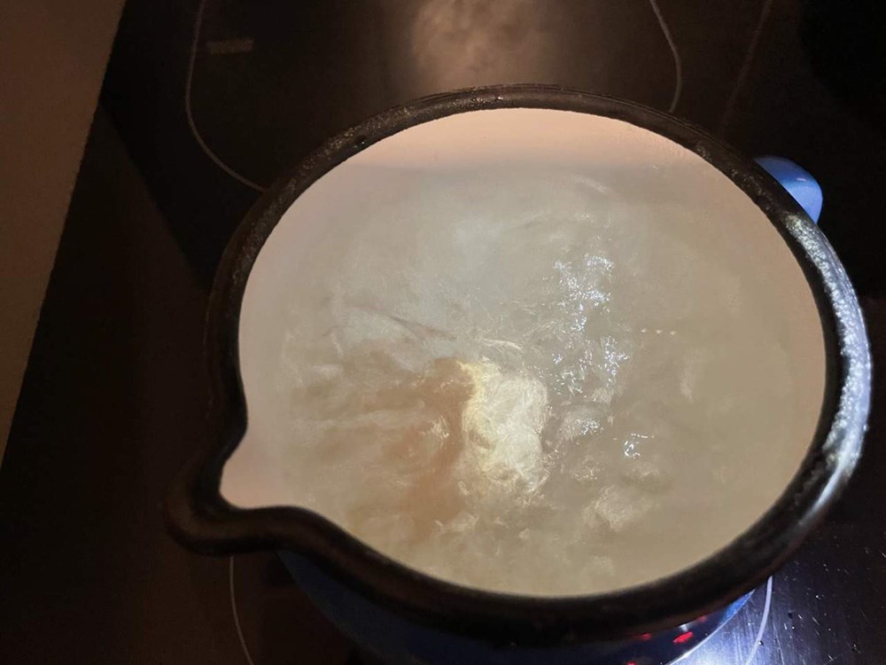 Prvo stavimo u kipuću vodu jaje i kuhamo cca tri minute. Nakon toga stavimo ga u zdjelu hladne vode i ogulimo ga pa zatim oštrim nožem prerežemo na pola.