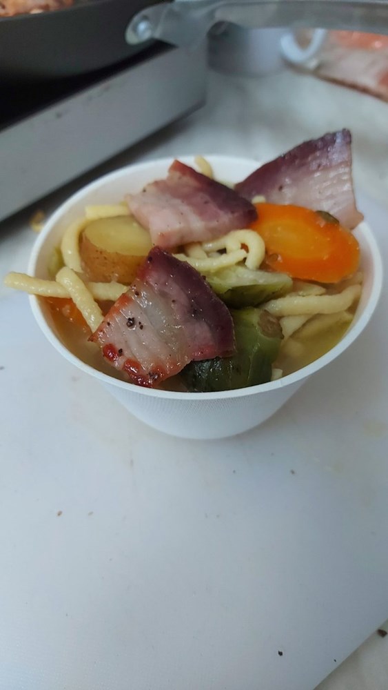 Normalno da s osmjehom na licu, nakon što sam od šjorica sa štandova iscjenkao korjenastog povrća, iz Matejeve butige izlazim s kusom sočne Boškarske pancete... hehehe... dakle - počinjemo...