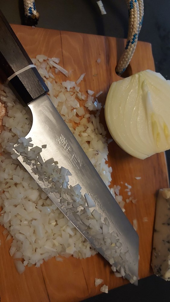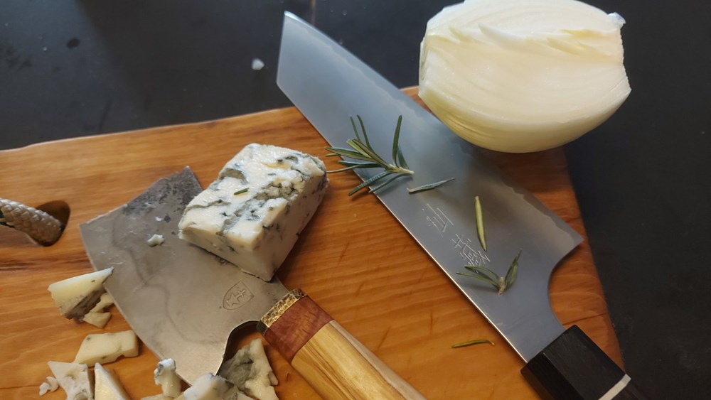 Listiće od jedne grančice ružmarina nasjeckati na što sitnije... zatim i luk nasjeckati što sitnije...