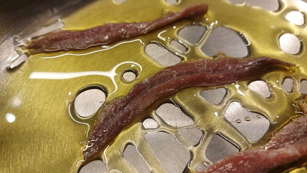 Na manjoj tavici u maslinovom ulju lagano pržiti par minuta slane sardone, pa onda dodati pola deca malvazije uz konstantno miješanje... sardoni će se istopiti i dobiti ćete odličan slani preljev...