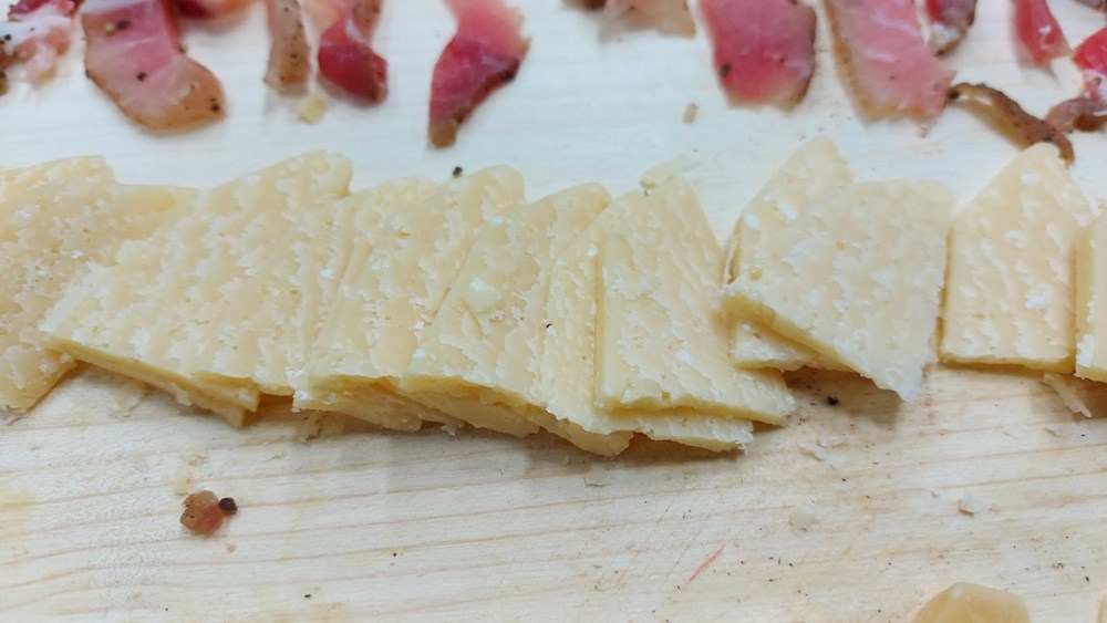Zarebnjak (a možete i ombolo) narezati na tanke trakice, sir narezati na tanke trakice... francuski kruh razrezati na trećine pa na pola...