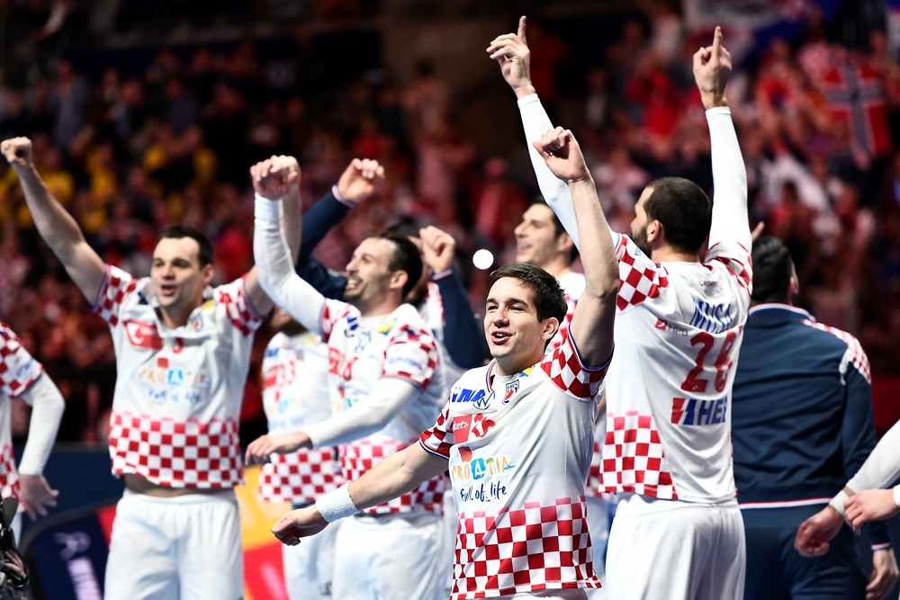 Hrvatska je u prvom polufinalu pobijedila Norvešku sa 29-28, ali tek u drugom produžetku. U osnovnom dijelu utakmice rezultat je bio 23-23, a nakon prvog produžetka 26-26, kad je Domagoj Duvnjak realizirao sedmerac izboren u posljednjoj sekundi. Pobjedu Hrvatskoj donio je Željko Musa pogotkom četiri sekunde prije završetka drugog produžetka. Duvnjak je sa osam pogodaka bio najbolji igrač utakmice, a šest golova postigao je Marino Marić. Marin Šego je imao 11 obrana. Norvežanima nije pomoglo 10 pogodaka Sandera Sagosena, kao ni 14 obrana Bergeruda.