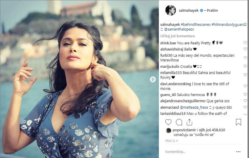Niti 52-godišnja holivudska ljepotica Salma Hayek nije ostala imuna na ljepotu Rovinja, pa je tako na svom Instagram profilu objavila fotku "iza kulisa" snimanja filma "The Hitman's Wife's Bodyguard" koja je oduševila njene brojne fanove.
