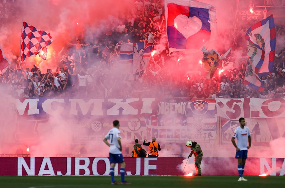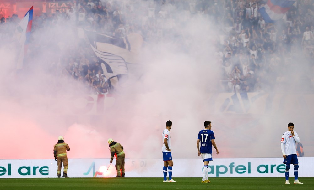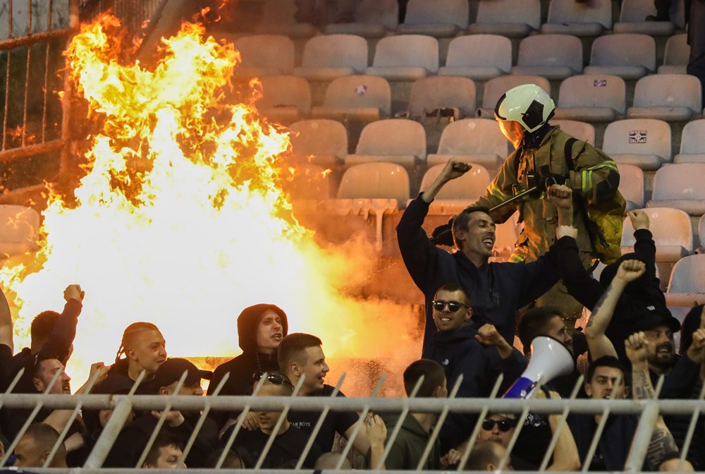Navijači Dinama su u 80. minuti utakmice zapalili stolice na južnoj tribini Poljuda. Evo kako je to izgledalo. Očito će vatrogasci i ovaj derbi imati pune ruke posla.