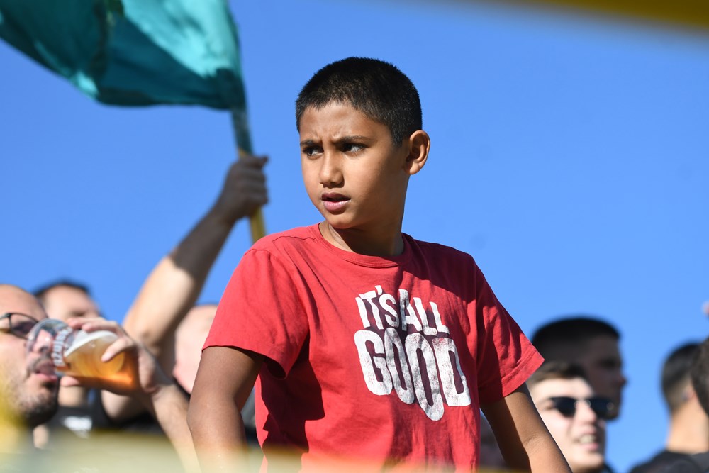 Sukladno najavama, gostujući su navijači, Armada, "okupirali" južnu tribinu, ali i onaj dio zapadne tribine neposredno uz jug. Znalo se da je nogometna groznica zahvatila grad na Rječini i da će nogometaši Rijeke imati veliku podršku s tribina na ovom derbiju, a to se i ostvarilo.