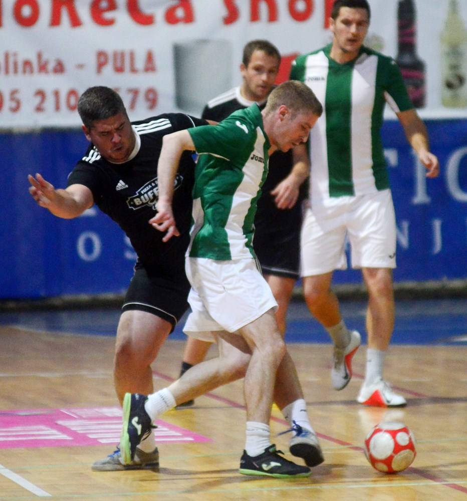 I drugi susret jučerašnjeg natjecateljskog dana, onaj između vodnjanskog Buffala i Grin baze, nije dao pobjednika nakon regularnih pola sata igre. Vodnjance je već u trećoj minuti u vodstvo doveo Ivan Macan, nakon čega je Andrej Radulović s nekoliko odličnih intervencija održao "grinovce" u životu te tako omogućio Saši Četkoviću da šest minuta prije kraja poravna i usmjeri susret prema "ruletu sedmeraca". Tu je prvih pet izvođača bilo precizno, premda je Radulović u dva navrata imao loptu na nozi, a onda je došao red na Roberta Deaka, Vodnjanca u redovima Grina. Praćen gromoglasnim zvižducima s dijela tribine na kojem su se smjestili navijači Buffala, Deak se odlučio za plasirani udarac kojeg je Manuel Matošević uspio zaustaviti i tako poslati "grinovce" u gledalište.