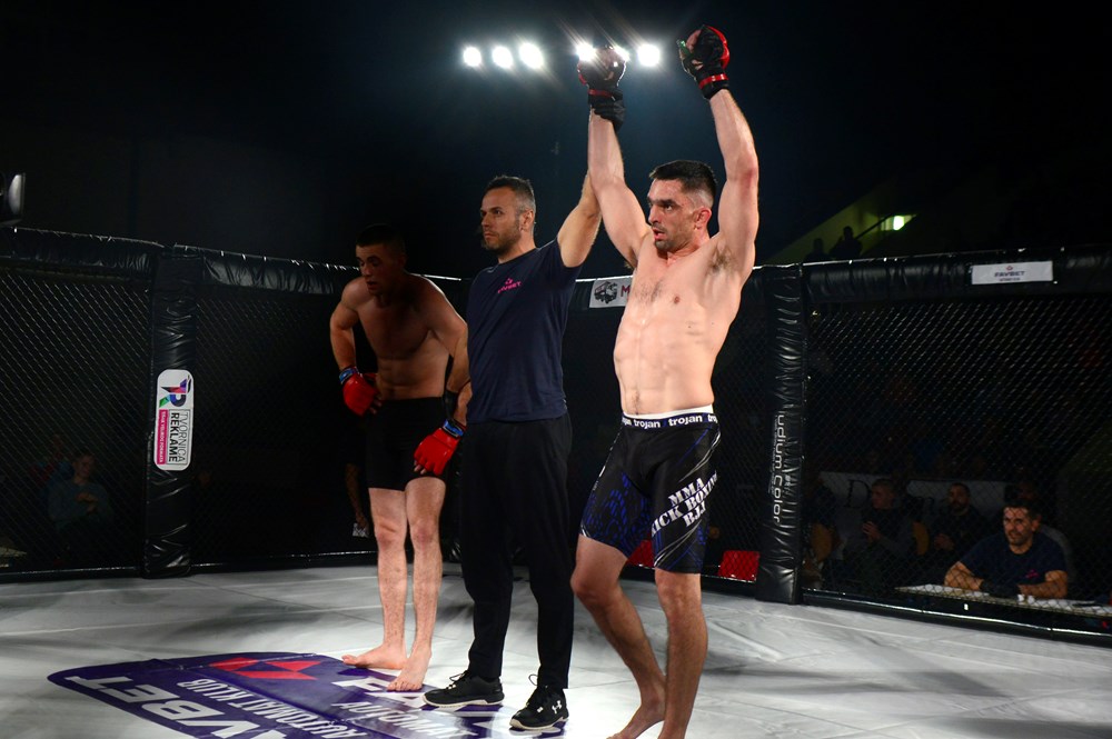 No, zato je Tonči Peruško deklasirao Ivicu Trogrlića iz BiH. Bosanskohercegovački borac bio je izuzetno nabrijan na vaganju, no pokazalo se da to nije izbacilo iz takta Peruška, koji je koncentrirano od prve sekunde borbe znao što želi i to je sproveo u kavezu. Široki udarci protivnika nisu ga mogli dohvatiti, za razliku od udaraca pulskog borca koji su često završavali na glavi protivnika. Čak je u jednom trenutku Peruško poslao Trogrlića u nokdaun, što je primjetno uzdrmalo protivnika, kojeg je Peruško dokrajčio udarcima laktovima u parteru nakon čega je u kavez doletio ručnik trenera protivnika u znak predaje.