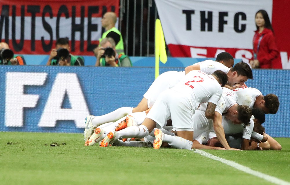 Prva opasna situacija na utakmici, u 5. minuti, rezultirala je pogotkom za Engleze. Luka Modrić je blizu 16-erca srušio Dele Allija, a Kieran Trippier je iz slobodnog udarca sa 20 metara zatresao mrežu.