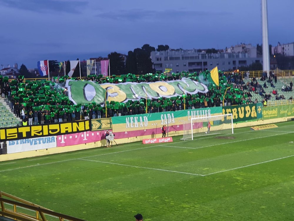 Uslijedila je u 30. minuti proslava 30. rođendana Demona praćena prigodnom koreografijom tijekom koje je i nekoliko baklji završilo na travnjaku, a kad se dimna zavjesa raščistila i utakmica nastavila, Puljani su propustili veliku priliku da susret vrate u rezultatsku ravnotežu. Igrala se 36. minuta kad je Mlinar odlično proigrao Belju, a ovaj je reagirao nesvojstveno reputaciji najboljeg strijelca Istre 1961 i s 15 metara uputio traljav udarac koji je završio daleko od gostujućeg gola.