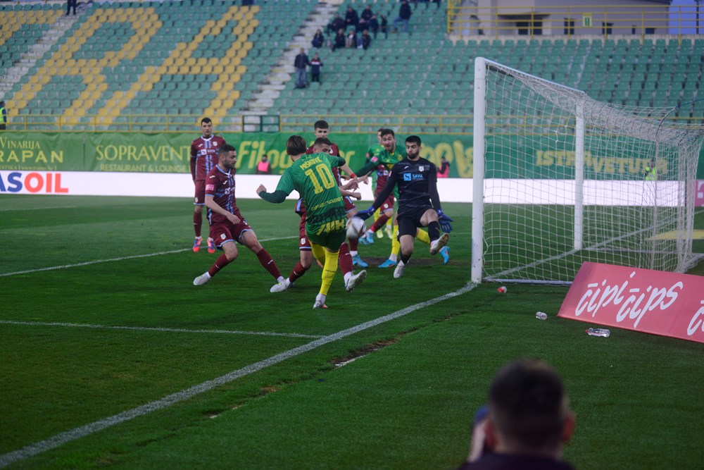 Riječani su uzvratili šest minuta kasnije brzom kontrom nakon koje je Vukčević preciznim ubačajem s lijeve strane naciljao Vučkića, čiji je udarac glavom iz neposredne blizine završio iznad gola. U narednoj minuti sličnu akciju mogli smo vidjeti i na drugoj strani, ali nakon kornera. Njega je izveo Mlinar, a u buketu igrača najviši je bio Joao Silva čiji je udarac glavom odličnom intervencijom zaustavio Labrović.