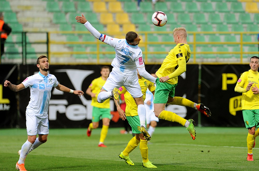 Bolje su u susret krenuli "zeleno-žuti", pa je tako već u trećoj minuti Laukžemis, nakon dodavanja Čuljka, udarcem s ruba kaznenog prostora testirao Sluginu koncentraciju, da bi dvije minute kasnije Pavić dobro probio lijepu stranu, ali na njegov ubačaj na drugu stativu nije dobro reagirao Savio. Ukazali su se potom i Riječani, točnije Punčec koji je pucao nogom nakon ubačaja Murića iz kuta, ali Čondrić nije imao problema s kroćenjem lopte koja je išla pravo u njega.