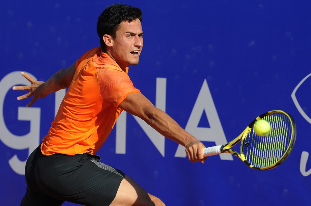Čeh Jiri Vesely (ATP-142.) umalo je bio previsoka prepreka za osmog nositelja turnira, Argentinca Leonarda Mayera(ATP-60.). Argentinac je, ipak, slavio 2-1 u setovima (3-6, 6-4, 6-4), nakon dva sata i 12 minuta igre. Vesely je doduše u prvom setu rano oduzeo servis Argentincu i sigurno ga priveo kraju. Izjednačena igra održavala se do 4-4 u drugom setu, kada osmi nositelj turnira oduzima servis Čehu i u sljedećem gemu dobiva drugi set. Mayer je nastavio s dobrom igrom u početkom trećeg, odlučujućeg seta jer odmah radi "break" kojeg smireno održava i privodi meč kraju za pobjedu. Najbliži izjednačenju Čeh je bio u drugom i šestom gemu trećeg seta kada nije iskoristio dvije "break" lopte po svakom gemu na servis Argentinca.
