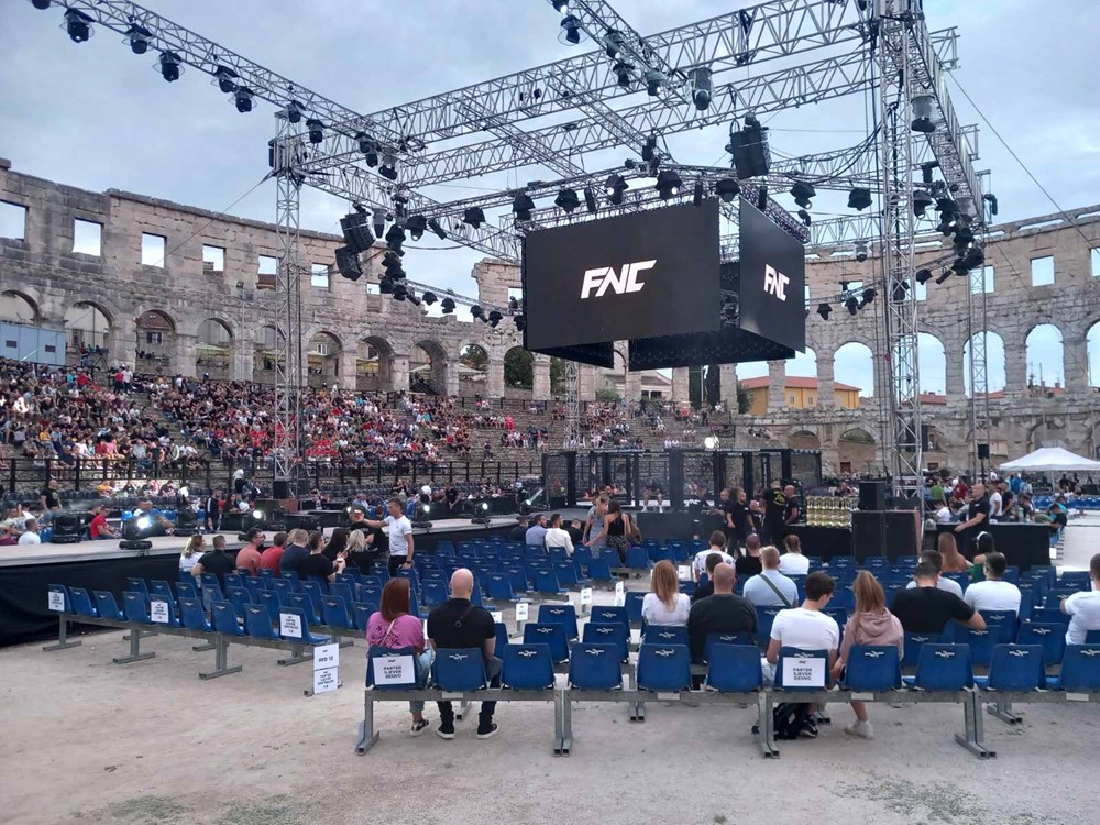 Uoči prve borbe u teškoj kategoriji između dvojice hrvatskih boraca, Vlade Neferanovića i Mladena Kujundžića, minuta šutnje u Areni. Mario Špekuljuk, jedan od osnivača FNC-a, poginuo lani na današnji dan.