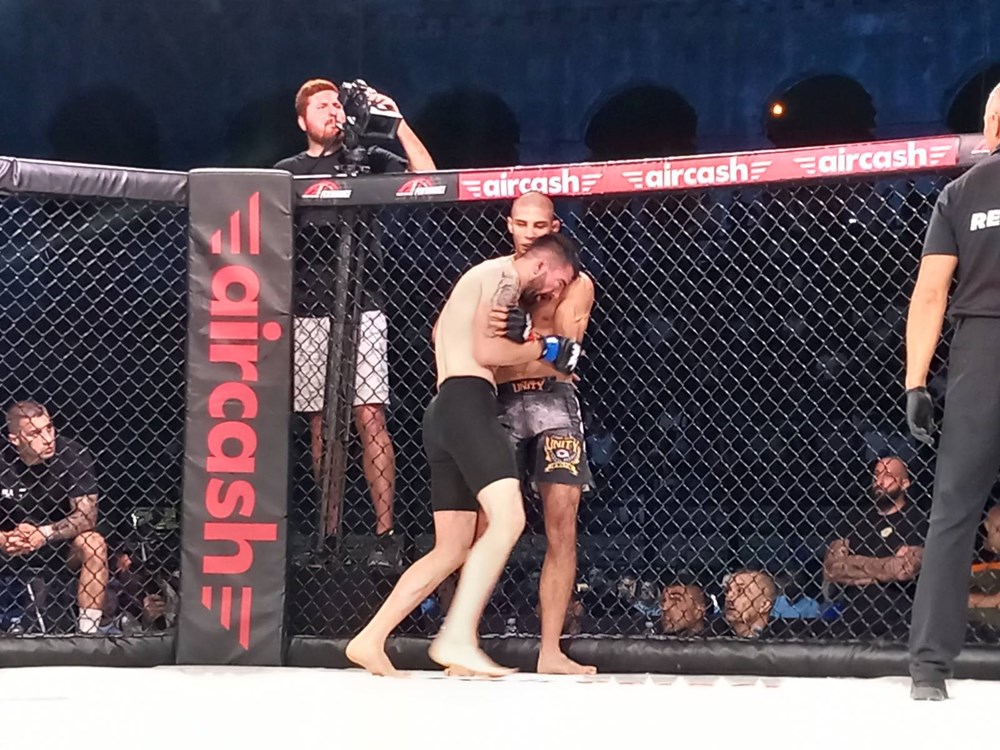 Hrvatski borac dobio je prvu borbu večeri, u perolakoj kategoriji je svladao Senegalca Sambu Thiama. Dominirao cijelo vrijeme, sve tri runde. Slavio je jednoglasnom odlukom sudaca.