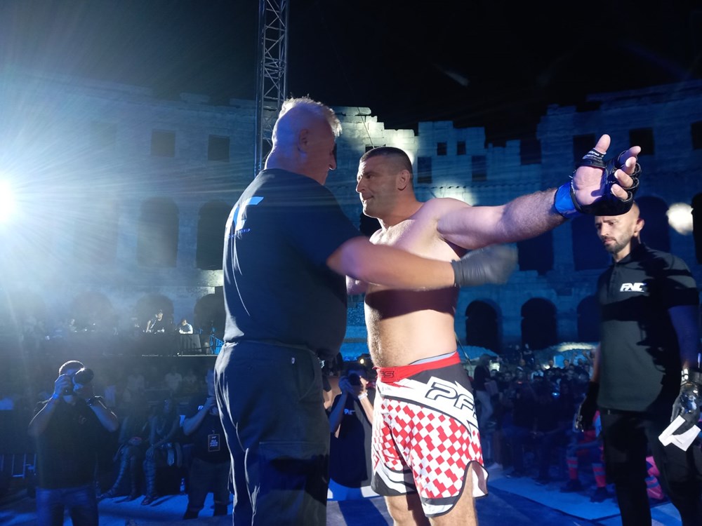 Slijedi posljednja borba večeri. U ring će uskoro ući Ivan Vitasović Mrvica koji u teškoj kategoriji brani naslov protiv brazilskoj gorostasa Geronima Dos Santosa.