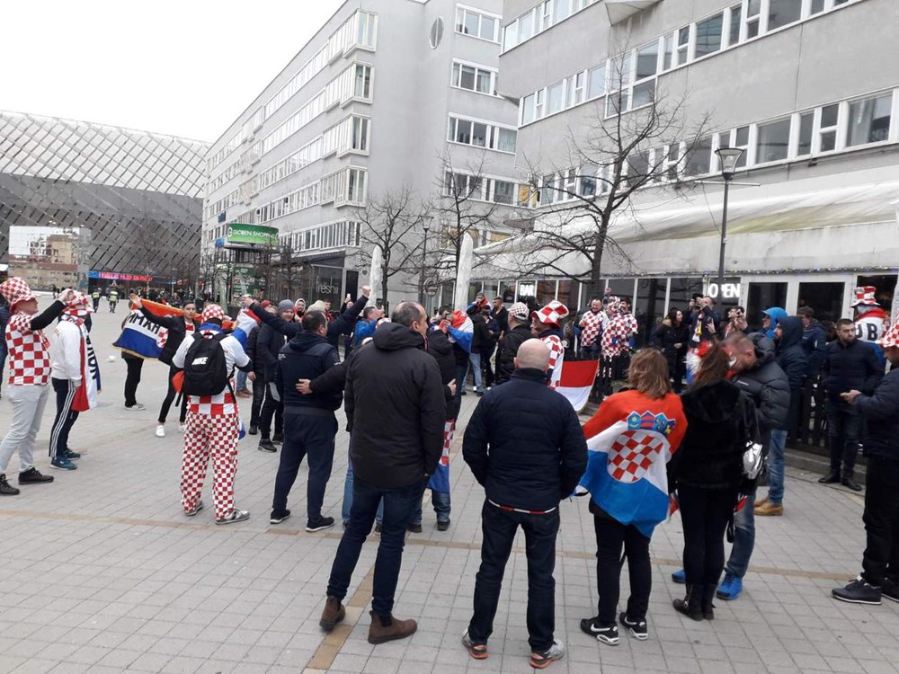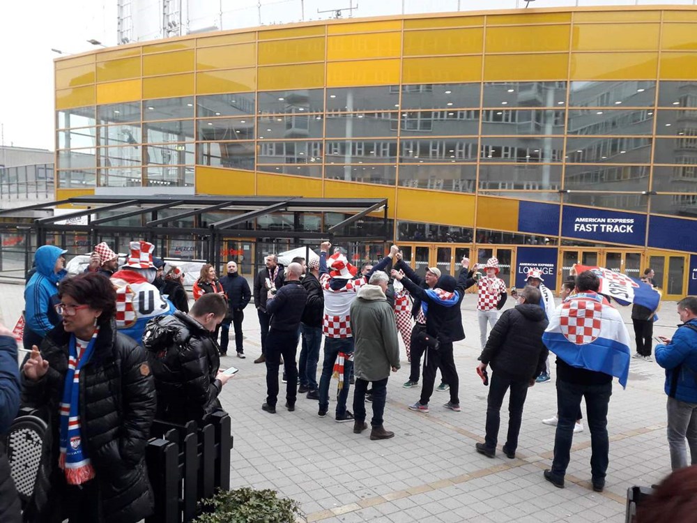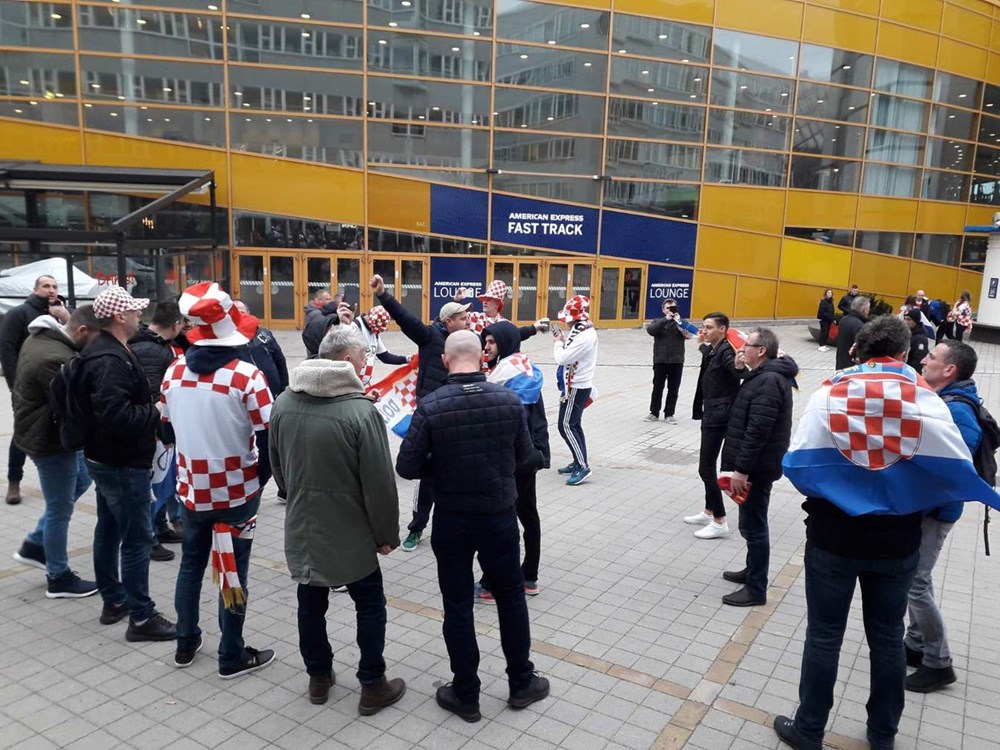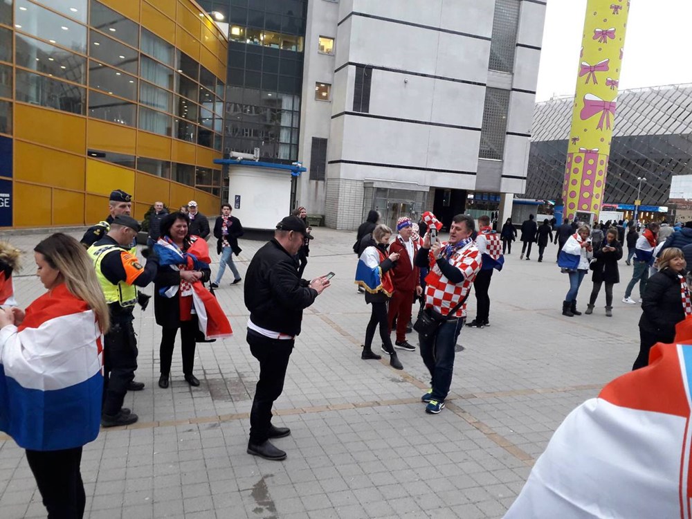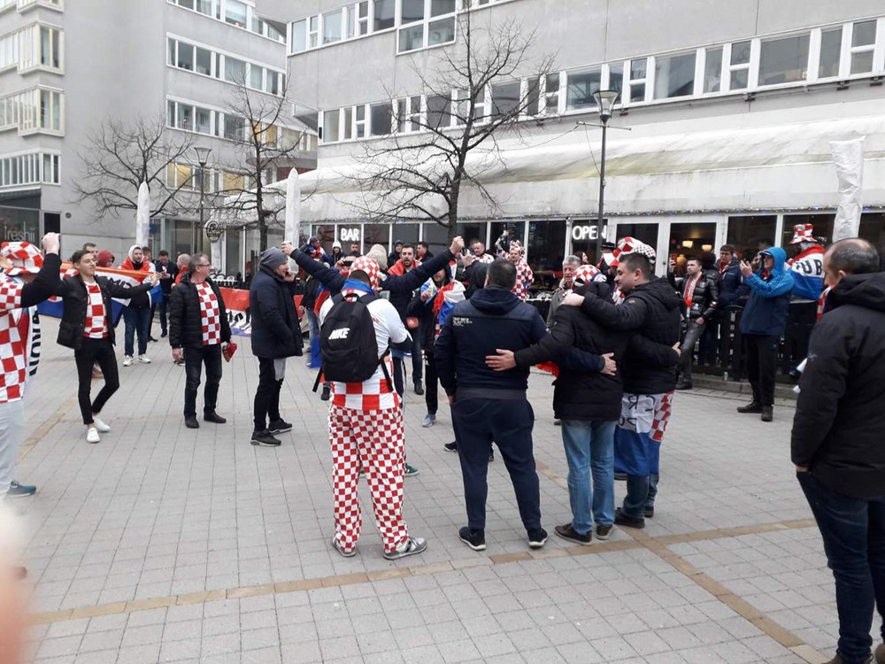 Čitateljica Glasa Istre iz Pule javila nam se iz Stockholma sat vremena prije utakmice fotografijama hrvatskim navijača u prepoznatljivim crveno-bijelim kockicama koji su se okupljali ispred Tele2 Arene.