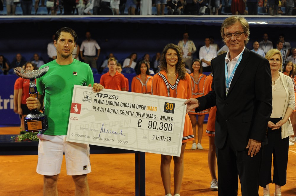 Lajoviću je pobjednički pokal predala predsjednica RH Kolinda Grabar-Kitarović, a 29-godišnjak iz Stare Pazove odlazi iz Umaga bogatiji za 250 ATP bodova i 90.390 eura. Poraženi Balasz dobio je 48.870 eura i 150 bodova.