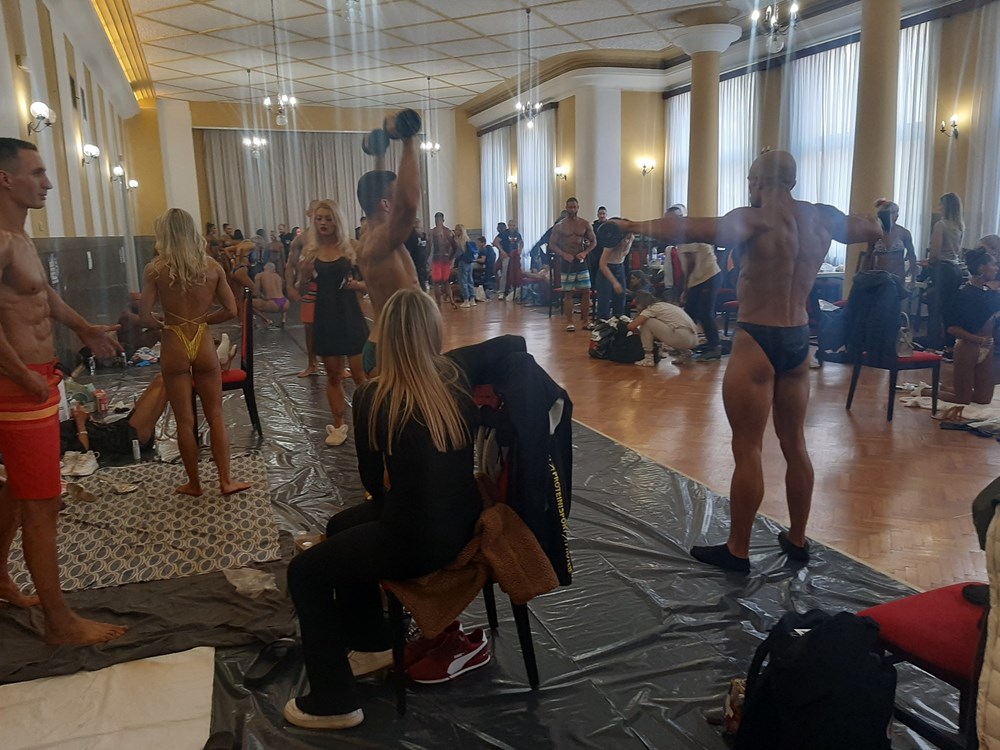 Već dva sata prije službenog otvaranja prvenstva, u svim prostorijama Doma hrvatskih branitelja, natjecatelji su se ubrzano pripremali. Mazala su se tijela kremama za tamnjenje, a potom i sjajem kako bi se što bolje ocrtavali mišići kao rezultat višemjesečnih priprema. Uvježbavale su se poze, "pumpali" mišići nogu i ruku, sve kako bi izgled pred sucima bio što upečatljiviji. Nije nedostajalo nervoze i vike, ali i smijeha kojim se razbijala trema. Natjecatelji koji su bili spremni, odmarali su na raznim improviziranim ležajevima sve do trenutka kada budu prozvani za izlazak na binu.