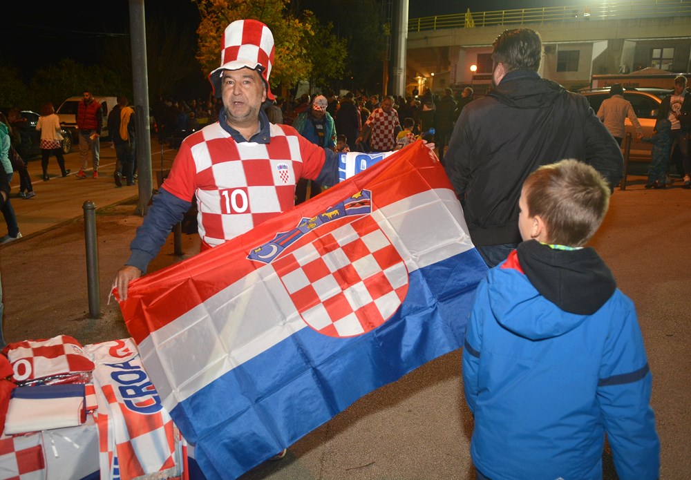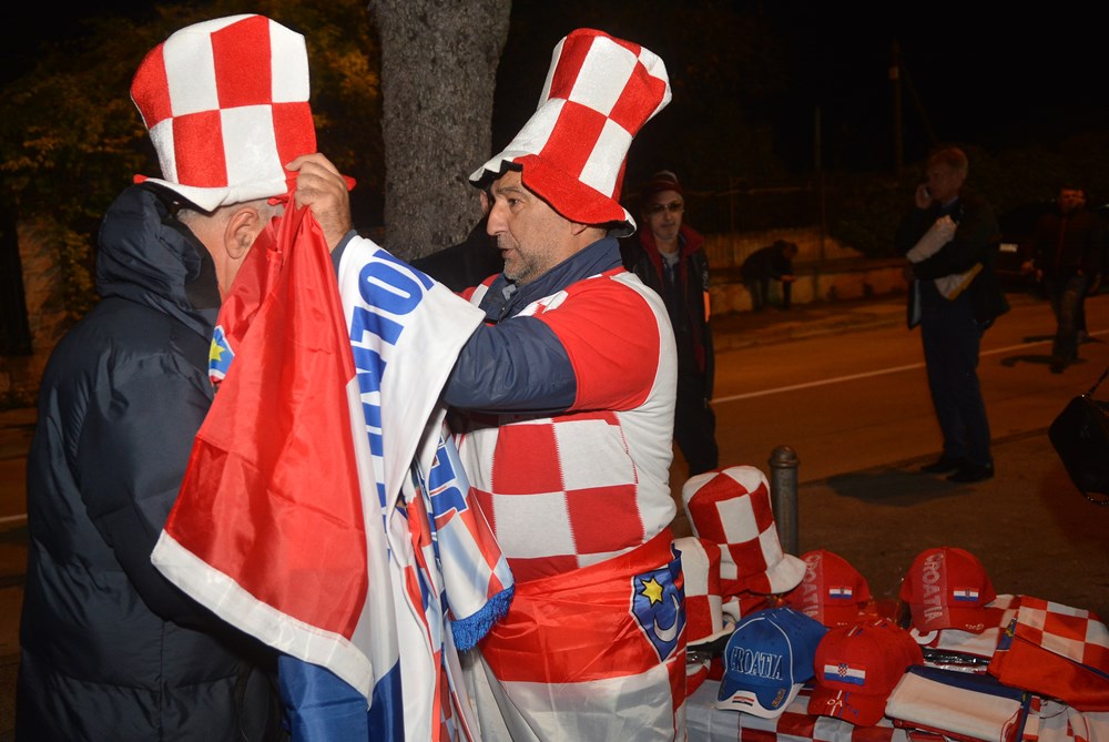 Potvrdilo se to i ovom prilikom, jer dva sata prije početka utakmice ništa nije ukazivalo na to kako će svjetski viceprvaci uskoro istrčati na pulski travnjak. Na Korzu i Flanatičkoj tek rijetki prolaznici, na Forumu grupica azijskih turista koji se slikaju pred Augustovim hramom, a od toliko prepoznatljivih kockica ni traga ni glasa. I onda, tamo negdje ispred zgrade Croatia osiguranja, napokon oni zbog kojih se nogomet i igra, navijači, sve redom muškarci i između njih jedna pripadnica nježnijeg spola.