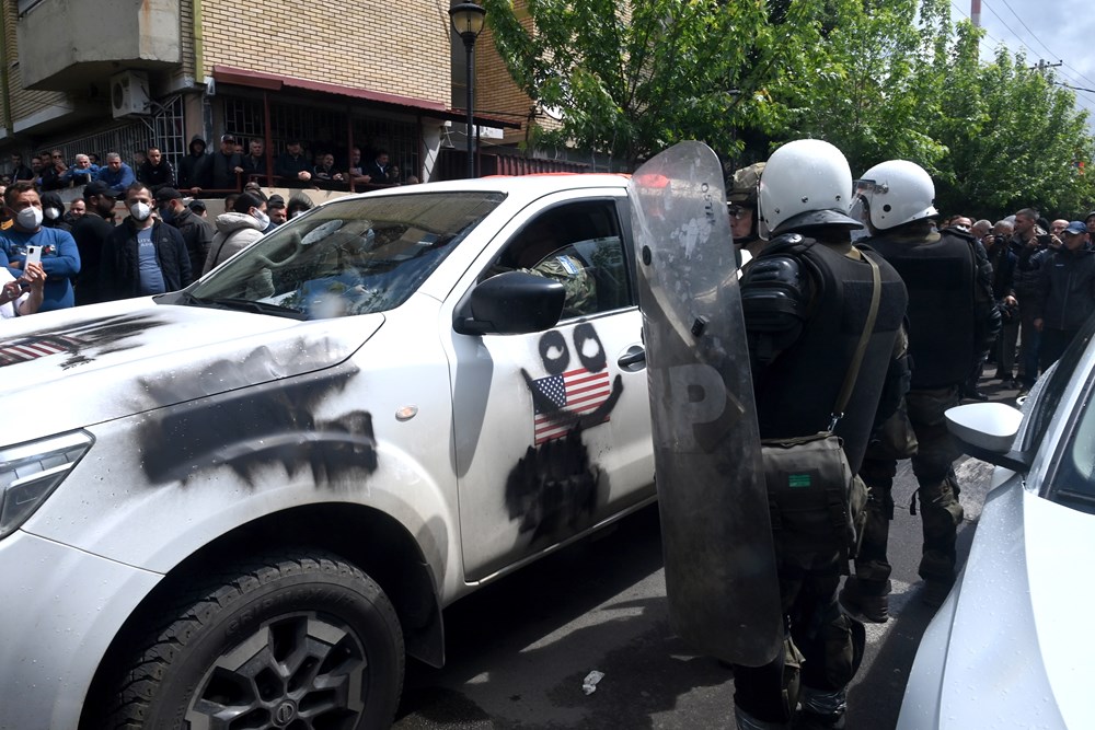 Napeta situacija je eskalirala u Zvečanu, gdje su specijalci spriječili skupinu prosvjednika da uđu u prostorije gradske uprave, izvijestio je novinar AFP-a.