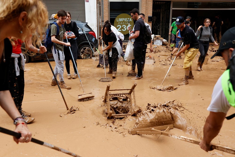 Dobrovoljci s metlama, lopatama i kantama širom regije pomažu u raščišćavanju, dok drugi ljudi tragaju za hranom i vodom.