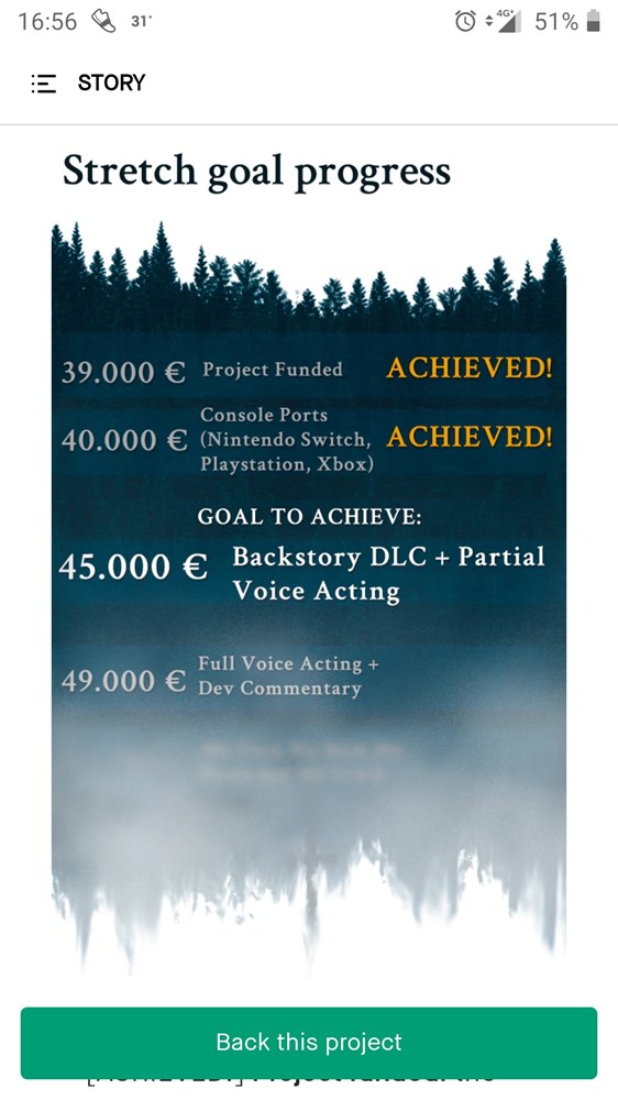 Bazični cilj kampanje bio je prikupiti 39 tisuća eura kojima bi se omogućilo da finalna verzija igrice u narednih godinu dana ugleda svjetlo dana. I taj cilj je, na zadovoljstvo Tominića i ekipe dosegnut i premašen, tako da će dodatna sredstva koja budu prikupljena u zadnjih nekoliko dana kampanje koja završava u subotu, svakako omogućiti dodatno podizanje ljestvice kvalitete i rad na nekim dodatnim opcijama i mogućnostima koje će po dovršetku nuditi ova igrica