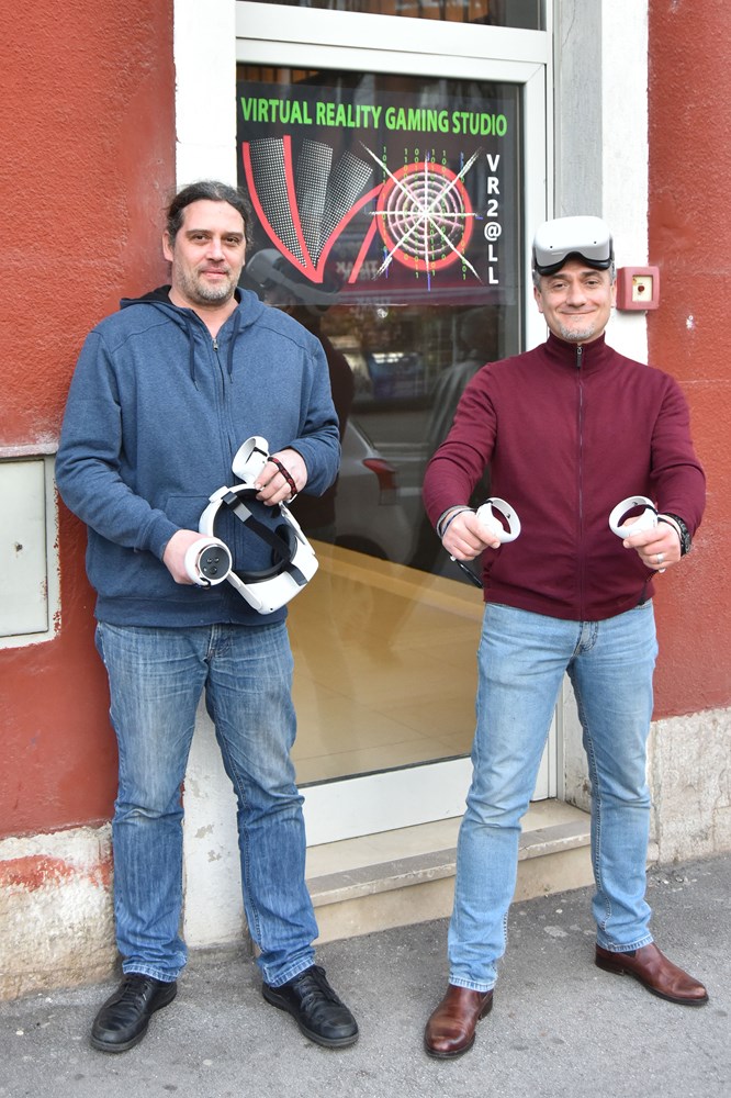 I koliko god danas ne možemo zamisliti život bez mobitela i kompjutera sa silnim aplikacijama koje nam olakšavaju život, virtualna stvarnost je za mnoge i dalje poprilično apstraktna. Stoga je ekipa Glasa Istre posjetila "VR Studio", najveću VR igraonicu u Hrvatskoj i široj regiji, koja je otvorena nedavno na pulskim Giardinima, a više o tome kako sve to funkcionira doznajemo od inicijatora i voditelja Gorana Mataića i Dejana Mihelača. Za početak su nam pojasnili kako funkcioniraju "alati" za ulazak u virtualnu realnost - headset i dva posebna kontrolera.