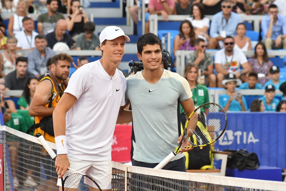 Prvi set dobio je Alcaraz u "tie-breaku", a oba tenisača su pokazala vrlo kvalitetnu igru i iznimnu čvrstinu na servisu. No, zato je početkom drugog seta uslijedio pravi festival lopti za obrat - prvo je Sinner spasio čak šest u drugom gemu, da bi odmah u sljedećem Španjolac izgubio svoj servis. Kod 1-2 Alcaraz propušta dvije "break" lopte, te opet odmah u narednoj igri još jednom gubi svoj početni udarac, a time i set, dok je Sinner nanizao sedam gemova u nizu.