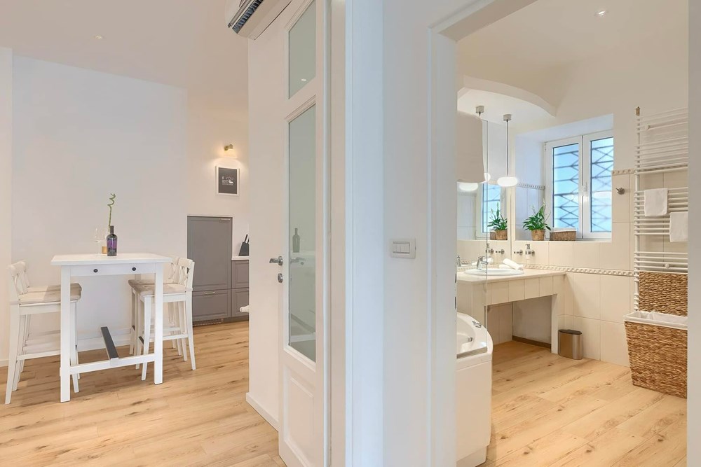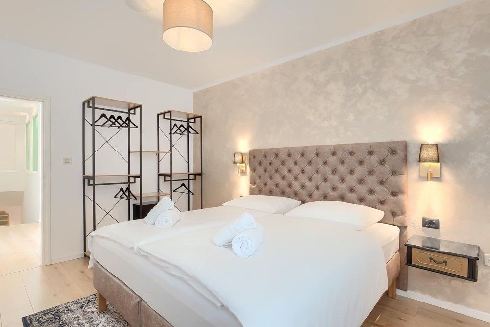 A tek efekt koji izaziva ulazak u apartman! S obzirom na to da je riječ o kući starije gradnje, širokim unutarnjim stepenicama se uspinje na kat gdje se pronalazi istinsku raskoš: 90 "kvadrata" za dvije osobe!