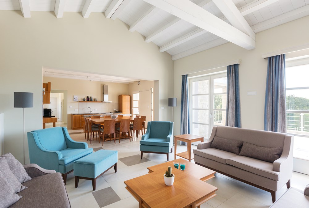 Spavaće sobe s vlastitom kupaonicom imaju king size krevete ili superking size krevete koji se mogu podijeliti u dva odvojena kreveta za smještaj različitih vrsta grupa. Vile se mogu iznajmiti pojedinačno ili kao grupa od dvije ili tri.