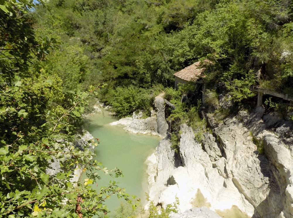 U napuštenom selu Šćaveti pauza je za marendu, a onda se kreće prema selu Kotli i tamošnjoj vodenici. Gornji je mlin, zvan i Cvekov malin, odavno srušila nabujala rijeka, no donji je mlin, malin od Šampatića, koji je priljubljen uz kamenu stijenu, svojevremeno rekonstruiran, i još uvijek, koliko, toliko odolijeva zubu vremena. Kotli su, kaže Zlata, dobili ime po vodom oblikovanim, kotlastim udubinama u stijeni koje su dio riječnog korita i imaju oblik kotla.