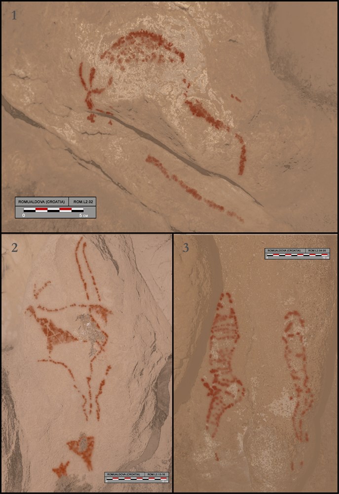 - Međunarodni znanstveni tim otkrio je da u Romualdovoj pećini postoje prapovijesne slikarije iz razdoblja paleolitika, stare, dakle, više od 30 tisuća godina, na kojima su prikazani bizon, divokoze i ljudske figure. Sama pećina dugačka je stotinjak metara i poznata je po tome što je u njoj po tradiciji obitavao sveti Romuald oko 1000. godine te po tome što su u njoj otkriveni materijalni ostaci neandertalaca iz razdoblja srednjeg paleolitika. Ove crteže izrađene crvenom bojom na zidovima pećina pronašao sam 2010. godine i pretpostavio njihovu pripadnost paleolitičkom razdoblju, a to je 2017. godine potvrdio ovaj međunarodni tim u sklopu projekta Balkart, čiji je cilj bio proučavanje paleolitičke umjetnosti na Balkanu, a financirali su ga francuska država i Arheološki muzej Istre. U pećini su dosad zabilježene 44 slikarije, od kojih se ističe nekoliko crteža koji predstavljaju bizona, divokozu, shematizirane prikaze ljudi i trokute, koji mogu simbolizirati ženski spol, naveo je ravnatelj Komšo.