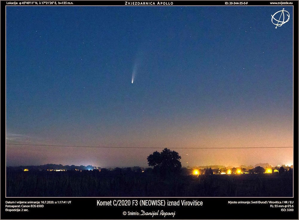 Poslije tri sata iza ponoći potražite ga na sjeveroistočnom horizontu. Ili, budimo lijeni pa samo sutradan poklikajmo fotografije na internetu onih koji su pogledom na Neowise obogatili svoj život nenadanim posjetiteljem iz svemira.