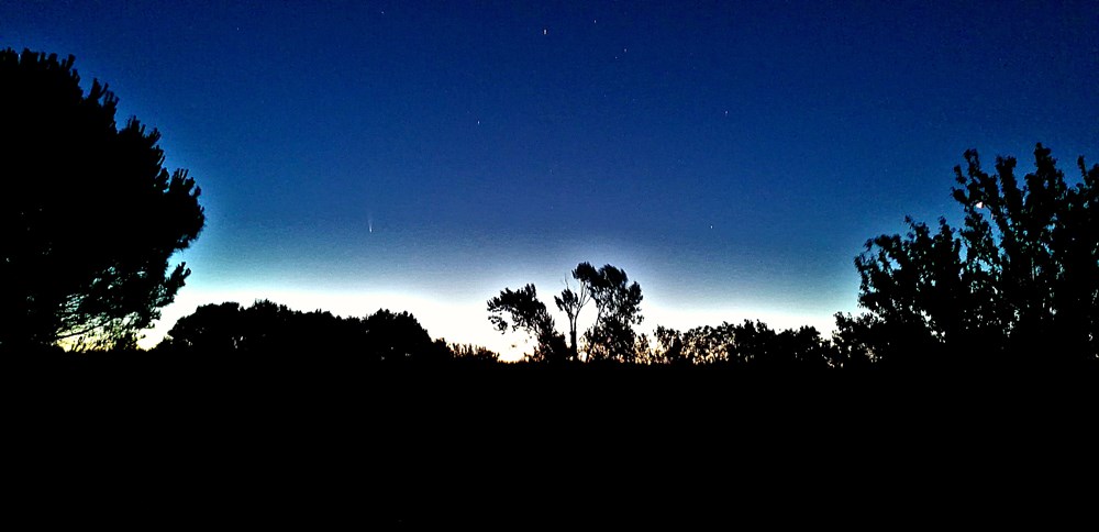 Zaglavite li nakon večernjeg pogleda na komet negdje u gradu s društvom, muči li vas nesanica, radite li večernju smjenu, komet Neowise, otkriven 27. ožujka 2020. od strane stroja, robota u svemiru (Near Earth Object Wide-field Infrared Survey Explorer), vidljiv je i rano ujutro.